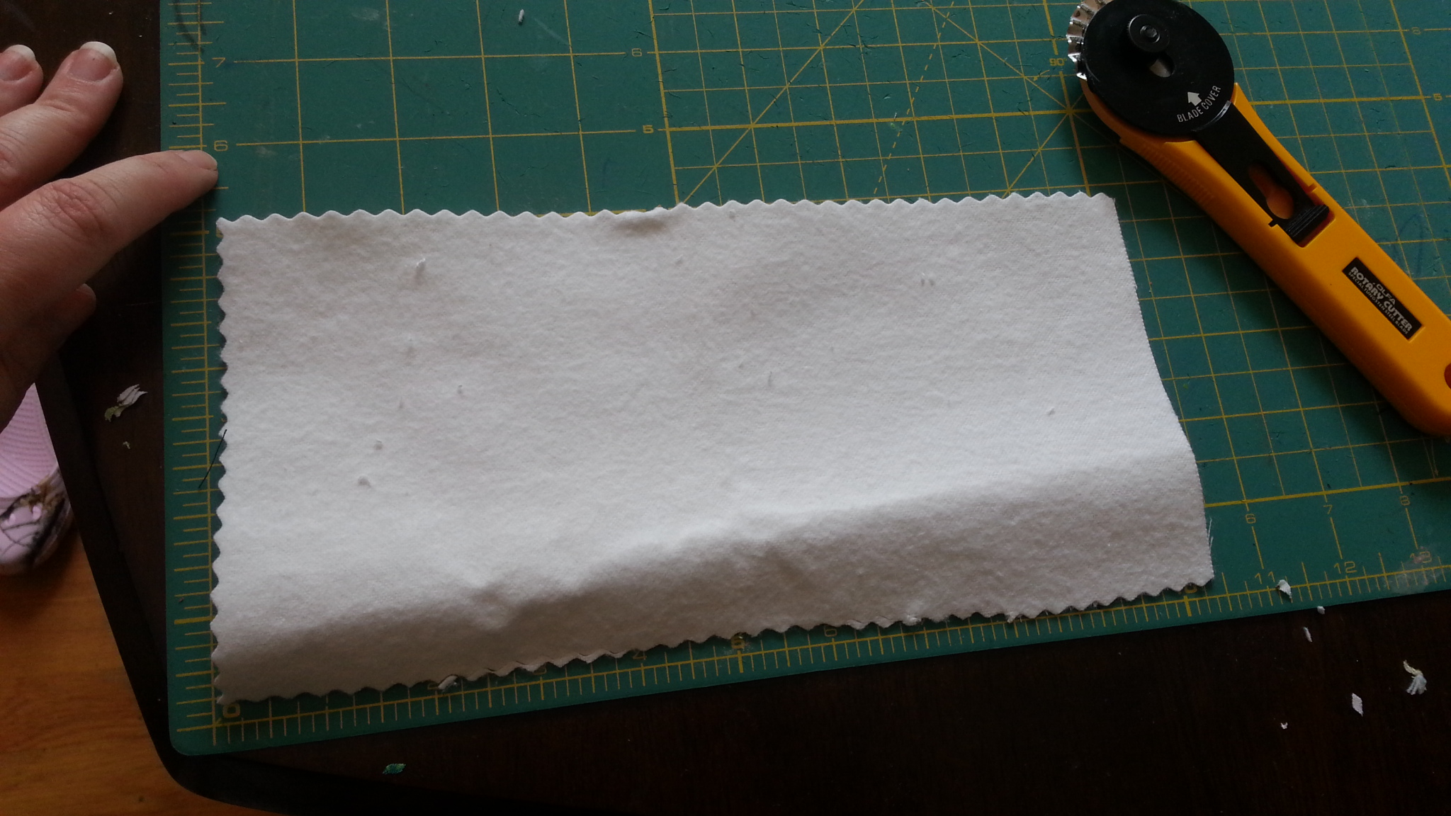 - PUL fabric. This is that magical water proof fabric people use in baby diapers and womans reusable sanitary pads. You’ll need a 10″x 6″ rectangle. (Or bigger if your pup was really blessed.)