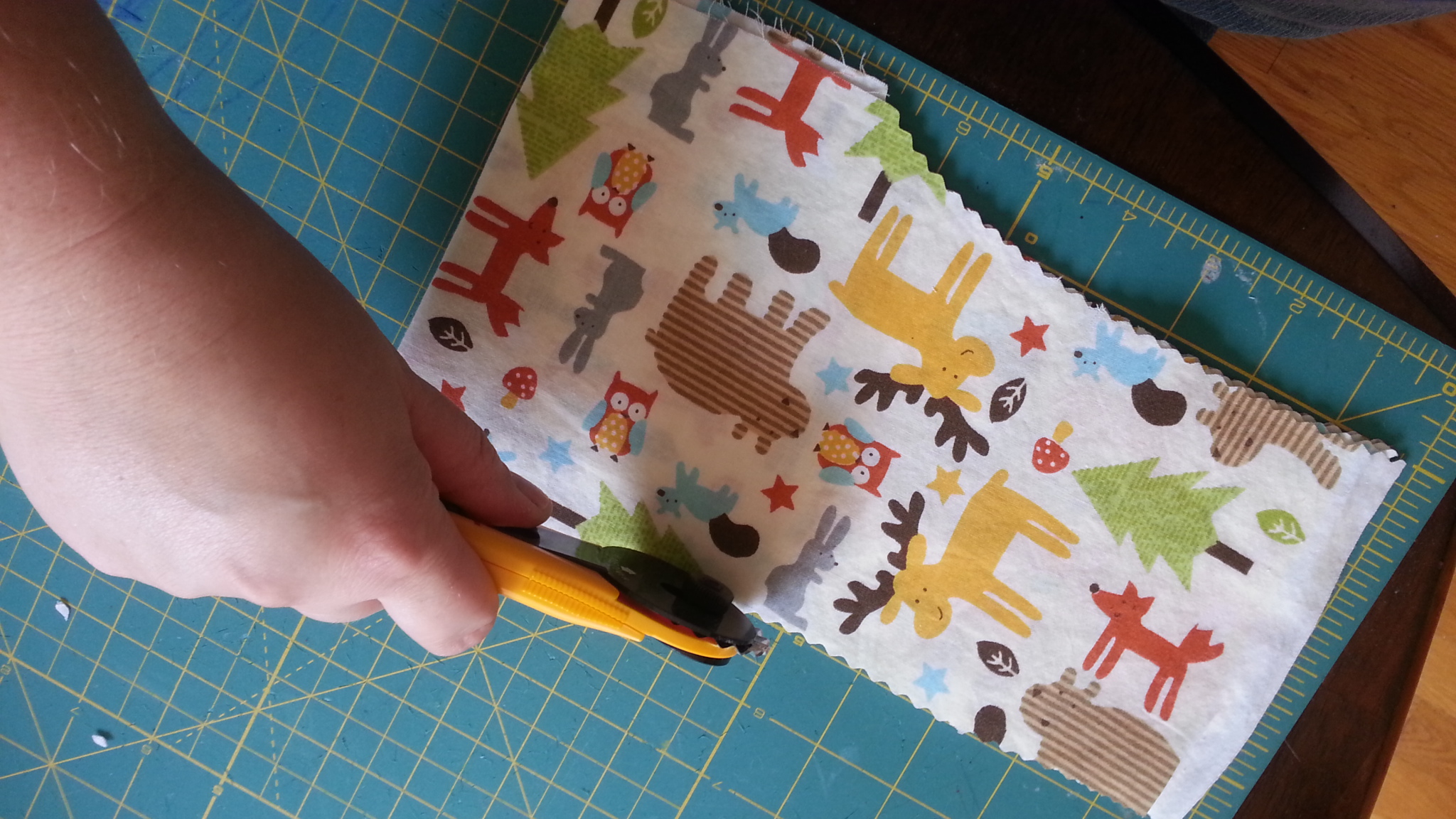 Iron it down nice and flat and smooth. Tuck in the sides of that free end you left open and iron it down flat. Then take it back over to your machine and do a topstich around the edge of the entire piece. The topstich should be about 1/4 of an inch away from the sides and be sure to catch your PUL fabric once again, to help secure it between the layers. You don’t want it to come free and bunch up later after a wash et