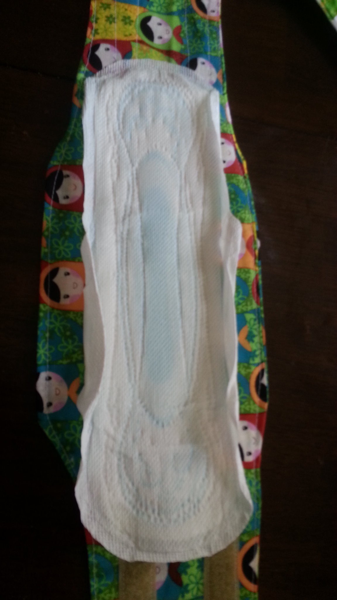 This particular version of a belly band utilizes a womans maxi pad on the inner/underside to catch any pee that Mr. Doggie might release. If that is not what you want, you can sew a soft layer of wool/fleece where the maxi pad would go and you would have yourself a remove and wash style belly band. It’s really preference. The wonderful lady who ordered these, preferred the maxi style because she doesn’t like doing 15 loads of laundry a day.